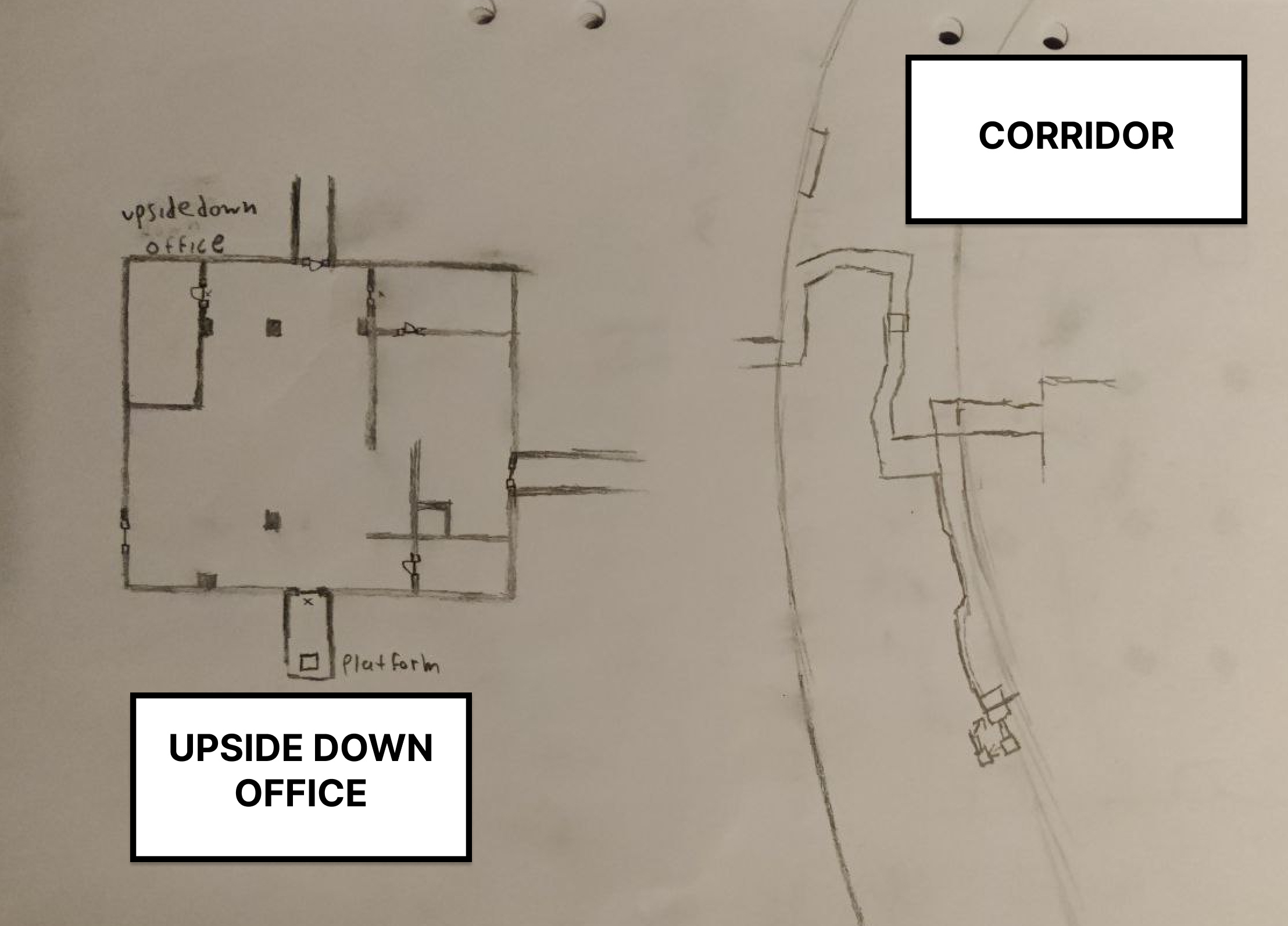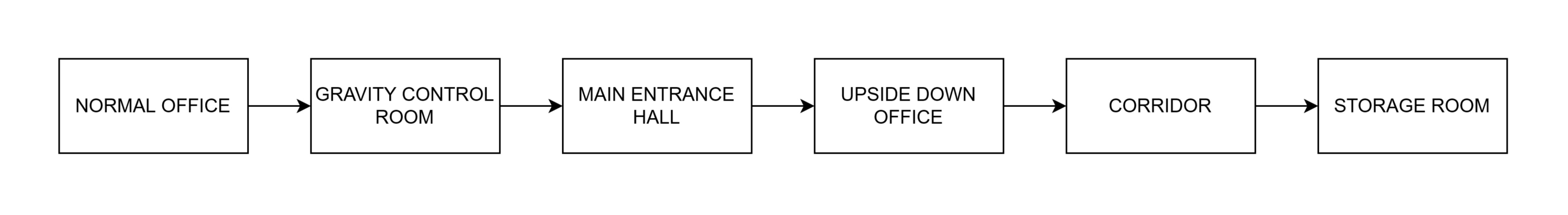 Here is the level flow map of the rooms and how the player moves through the facility. It shows the full route from the first office space to the later areas and reveals.