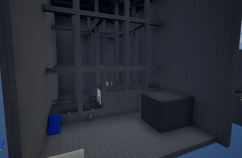 •Test how the player moves through a space I designedAt this stage, I focused on simple brutalist shapes and a forced route.